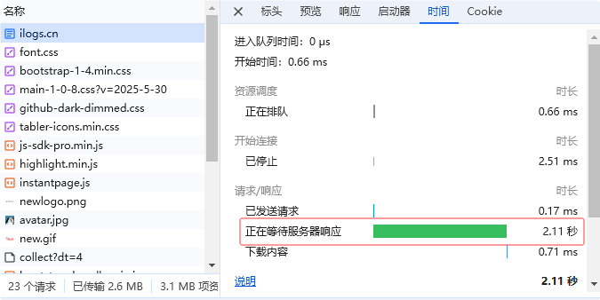 真是被折磨得够呛!从6月4号那天我重装了阿里云ECS的系统开始,网站的访问总是会卡顿几秒。浏览器加载页面时,那个“正在等待服务器响应”动不动就飙到2~4秒以上,简直要命!