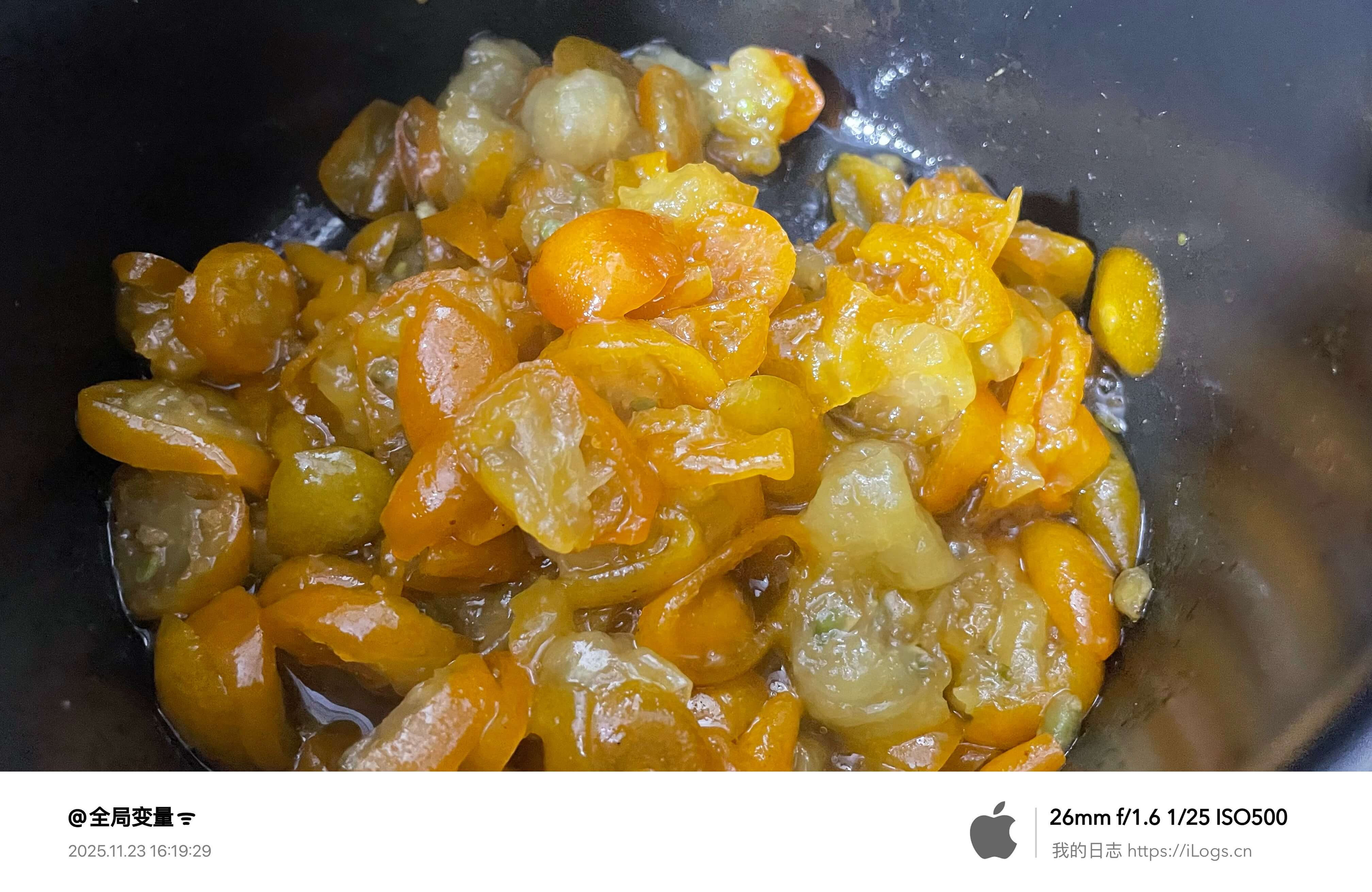 - 搅拌收膏:熬煮过程中要不断用铲子搅拌,防止冰糖粘锅糊底,煮 30-40 分钟后,金桔会逐渐变得半透明,汤汁变得浓稠、能挂在铲子上不滴落,就说明熬好了。