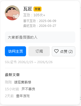 另外,友链资料卡片上线了点赞功能。对一位博友的点赞一天只能点一次。